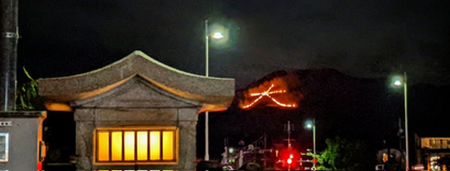 京都市鴨川デルタの賀茂大橋から臨む五山送り火の大文字です。